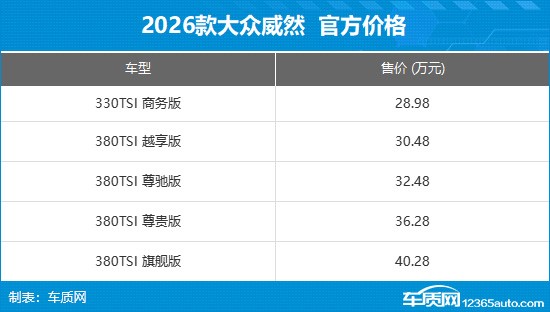 日前,2026款大众威然正式上市,作为上汽大众旗舰中大型MPV,新车推出5款车型,官方指导价28.98-40.28万元,限时权益价低至19.99-30.49万元,性价比大幅提升。