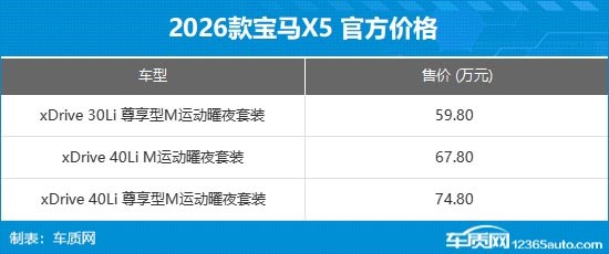 今日,我们从宝马官方获悉,旗下2026款宝马X5正式上市,共推出3款车型,售价区间为59.8-74.8万元。新车车型从之前的4款减少至3款,售价也有所降低。据悉,新车将在广州车展期间与大家见面。